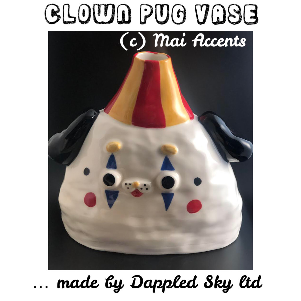 Items specifically made for Mai Accents included the ‘Circus Pug’ vase, the ‘Clown Pug’ vase. We aso made the red and brown ‘Fungo’ teapots, the ‘Tsuika’ plant pots, and the small speckled white ‘Nami’ vase.