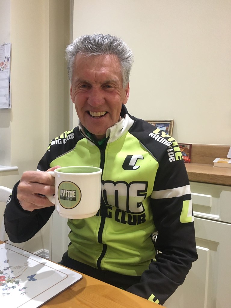 Left: “Lord Juggins” enjoying a morning brew in his favourite Lymies mug.